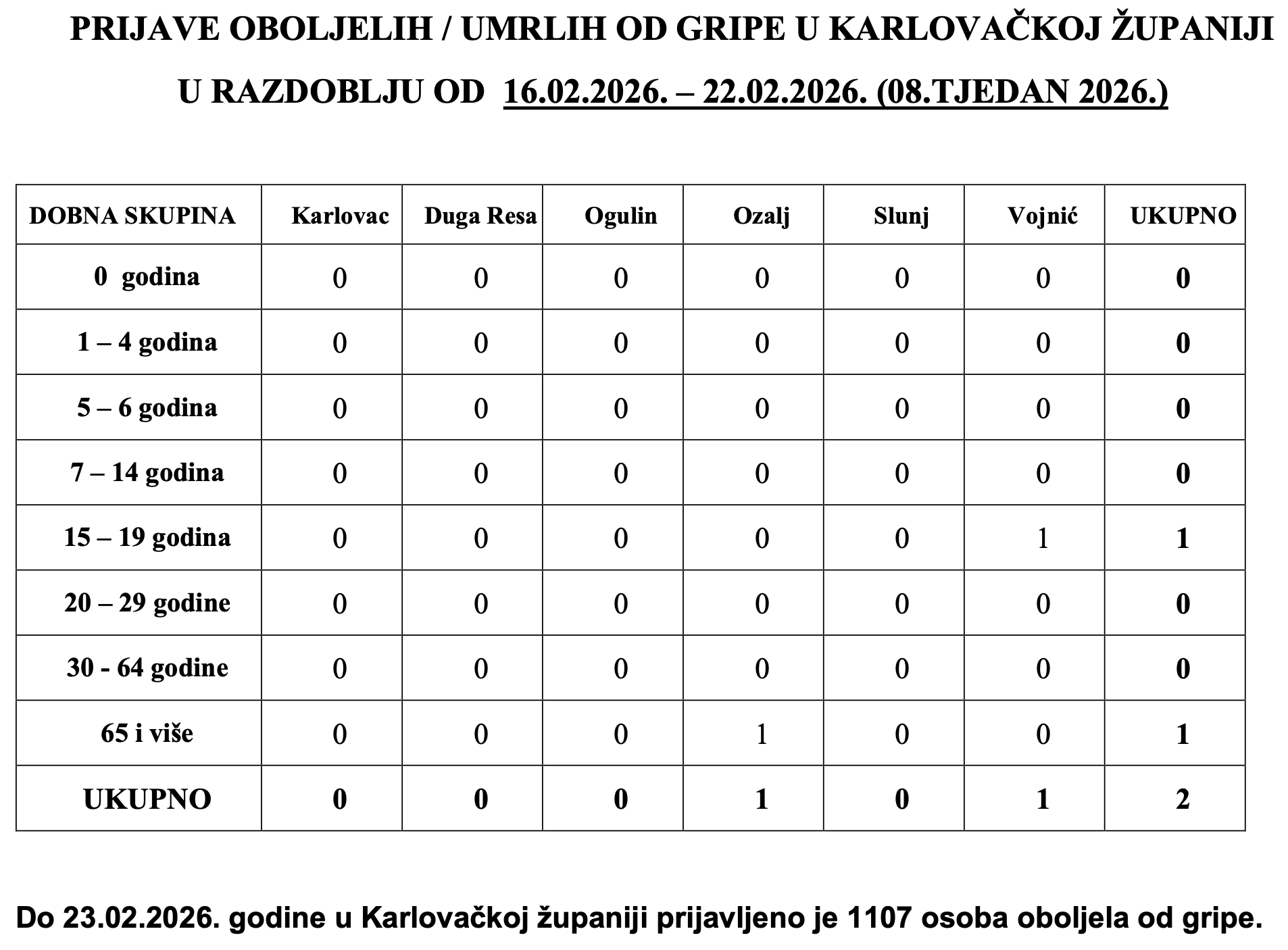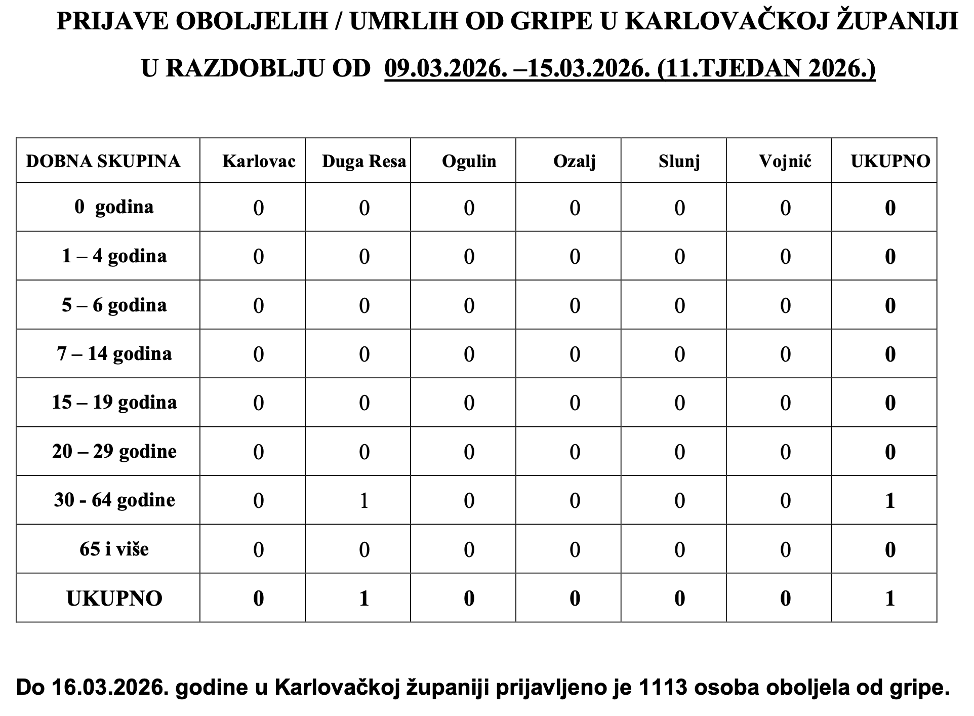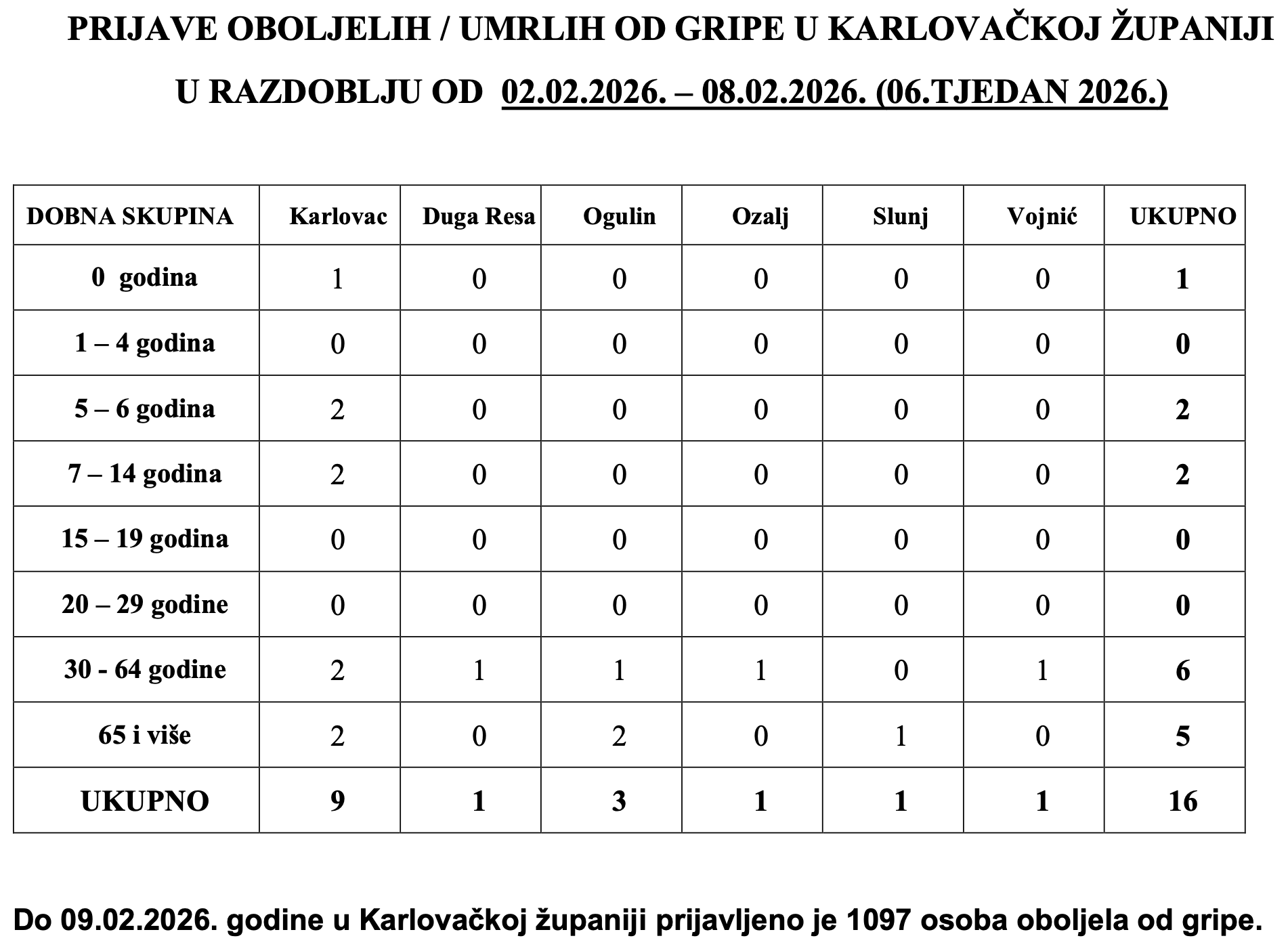 Gripa u Karlovačkoj županiji u sezoni 2025/2026.