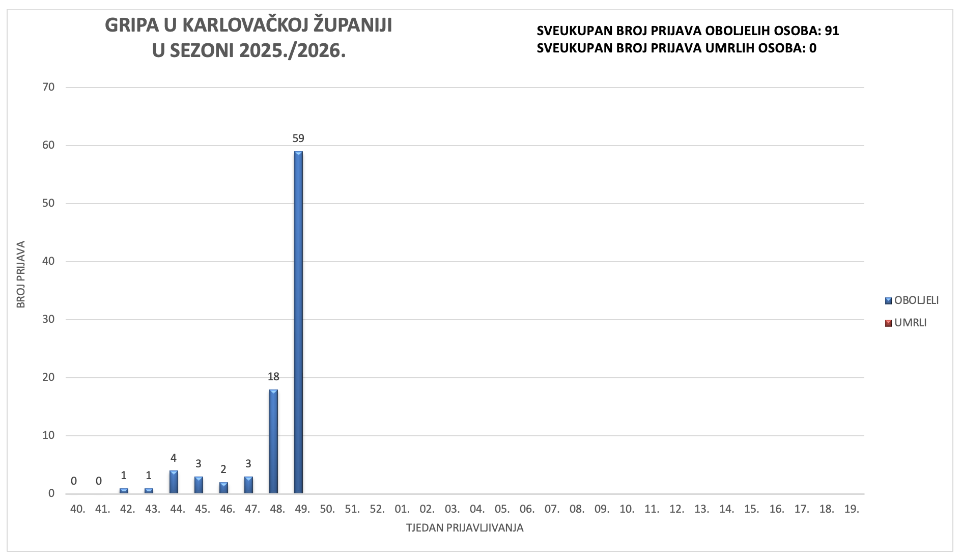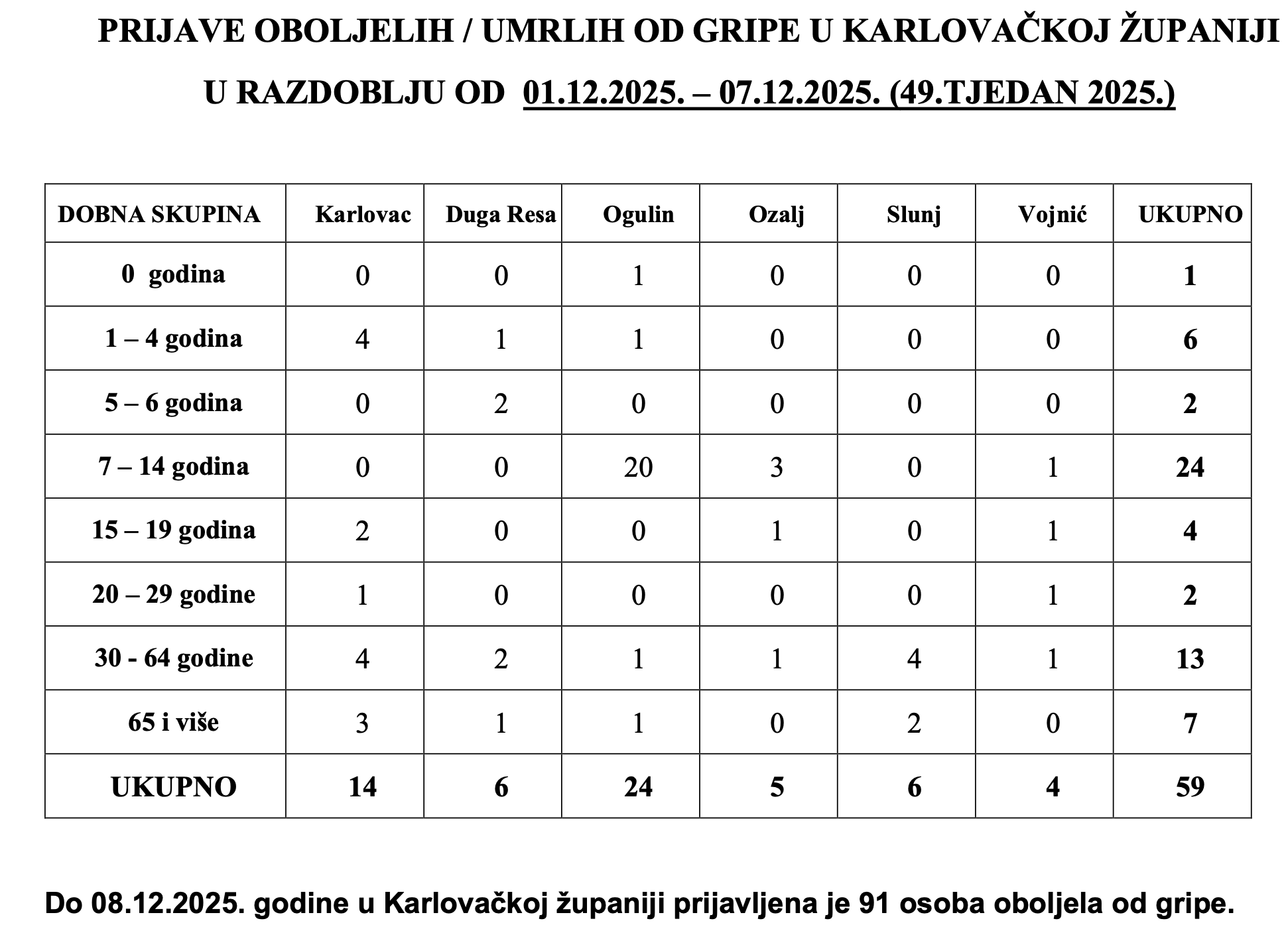 Za sezonu 2025./2026. godina za Karlovačku županiju nabavljeno 11 040 doza cjepiva protiv gripe, što je nešto više od procijenjenih potreba koje su poslali liječnici obiteljske medicine početkom godine.