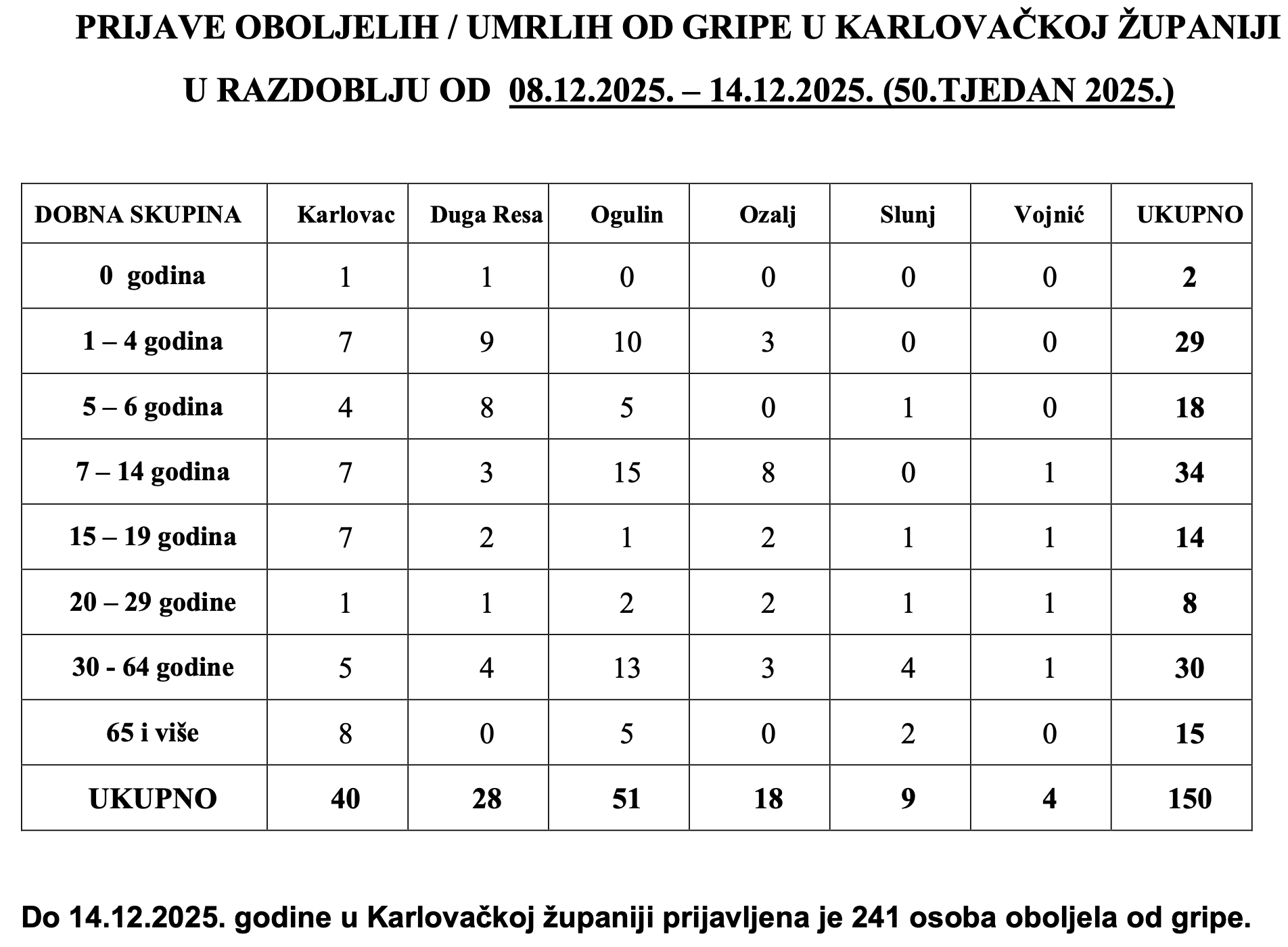 Gripa u Karlovačkoj županiji u sezoni 2025/2026.