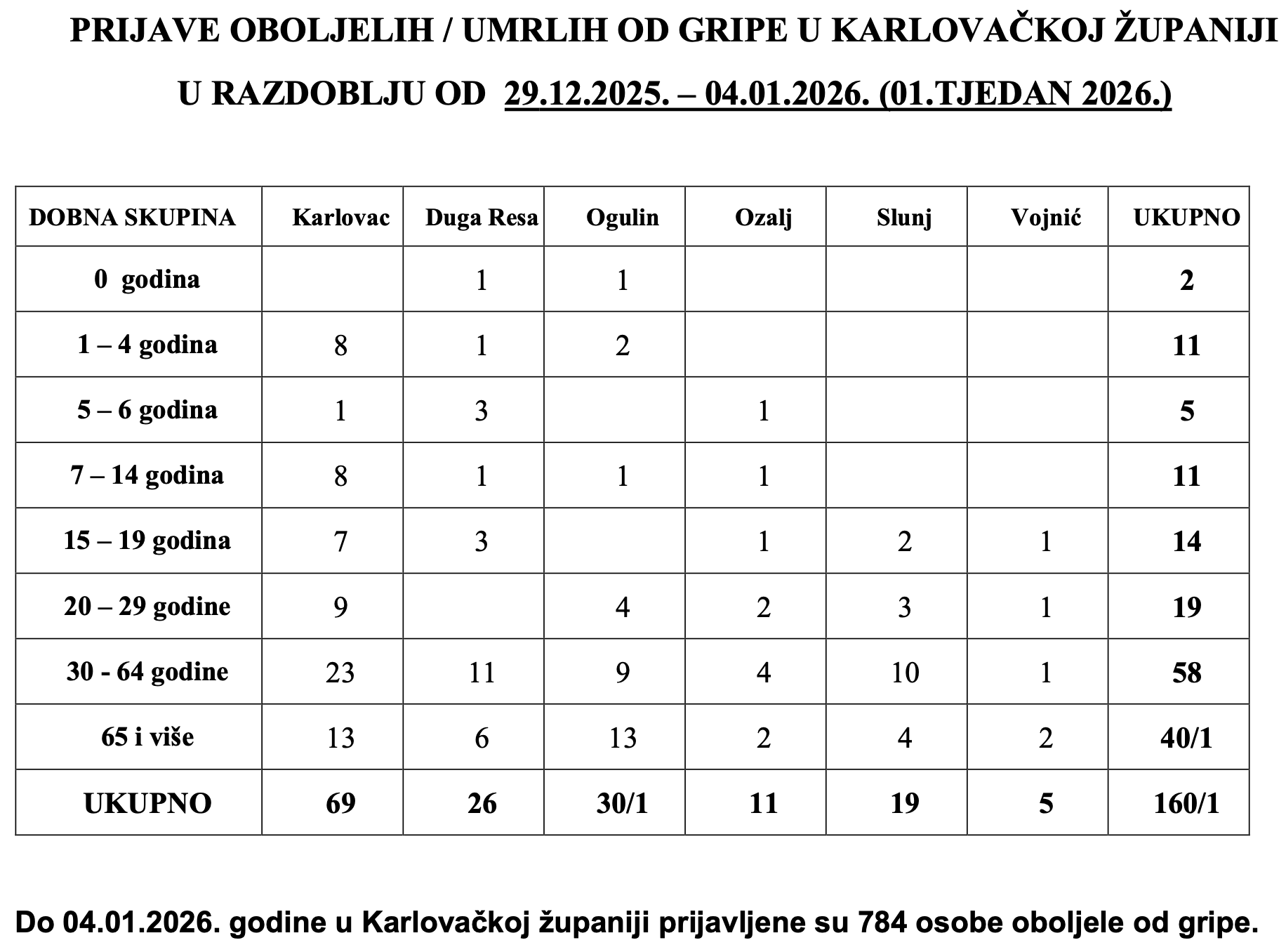 Gripa u Karlovačkoj županiji u sezoni 2025/2026.