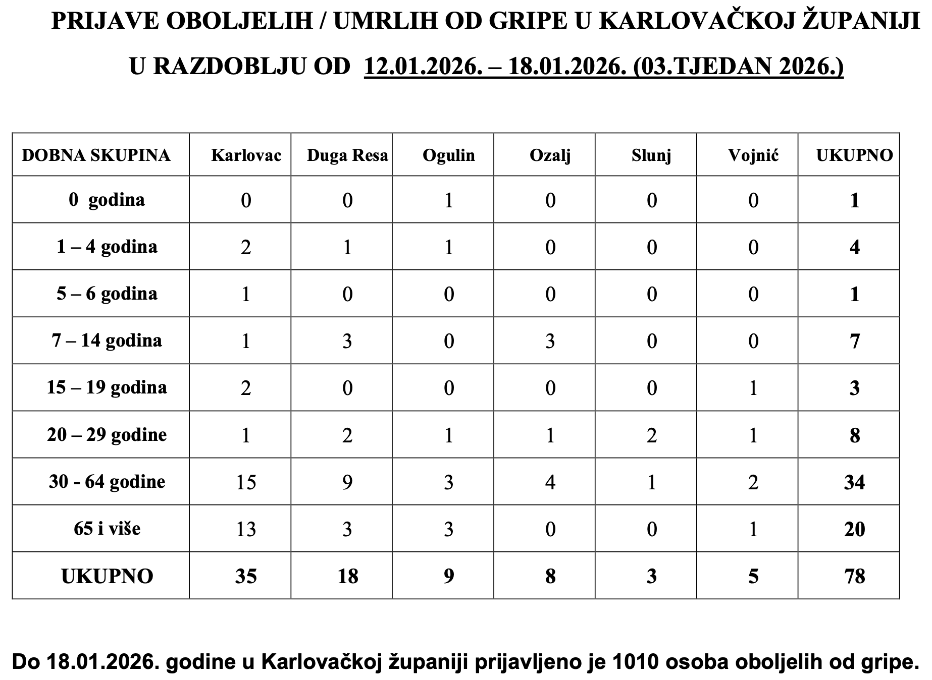 Gripa u Karlovačkoj županiji u sezoni 2025/2026.