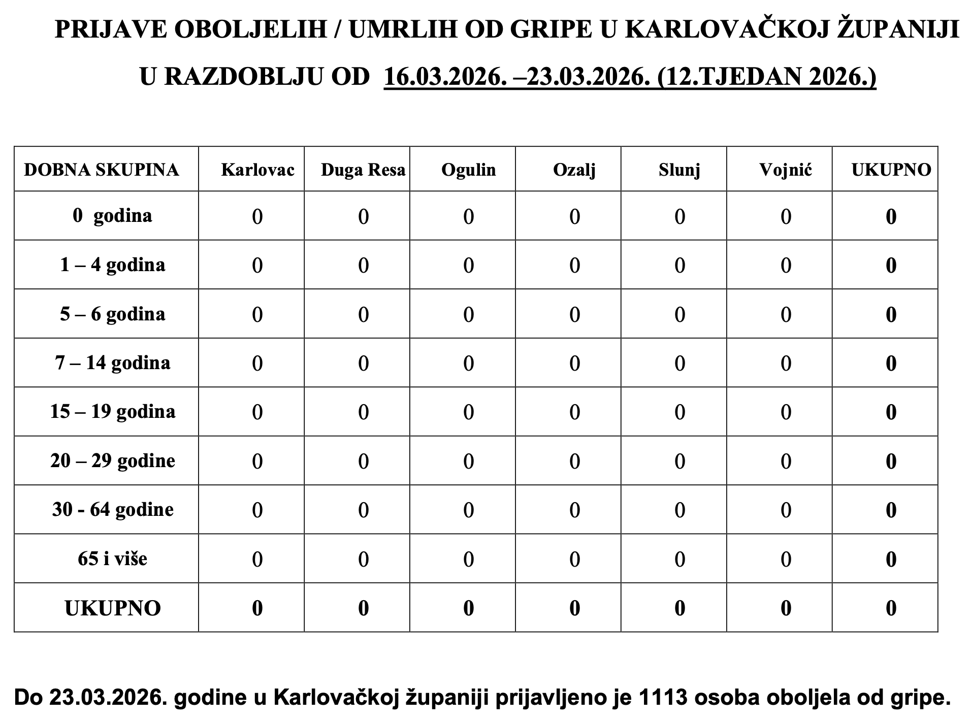 Gripa u Karlovačkoj županiji u sezoni 2025/2026.